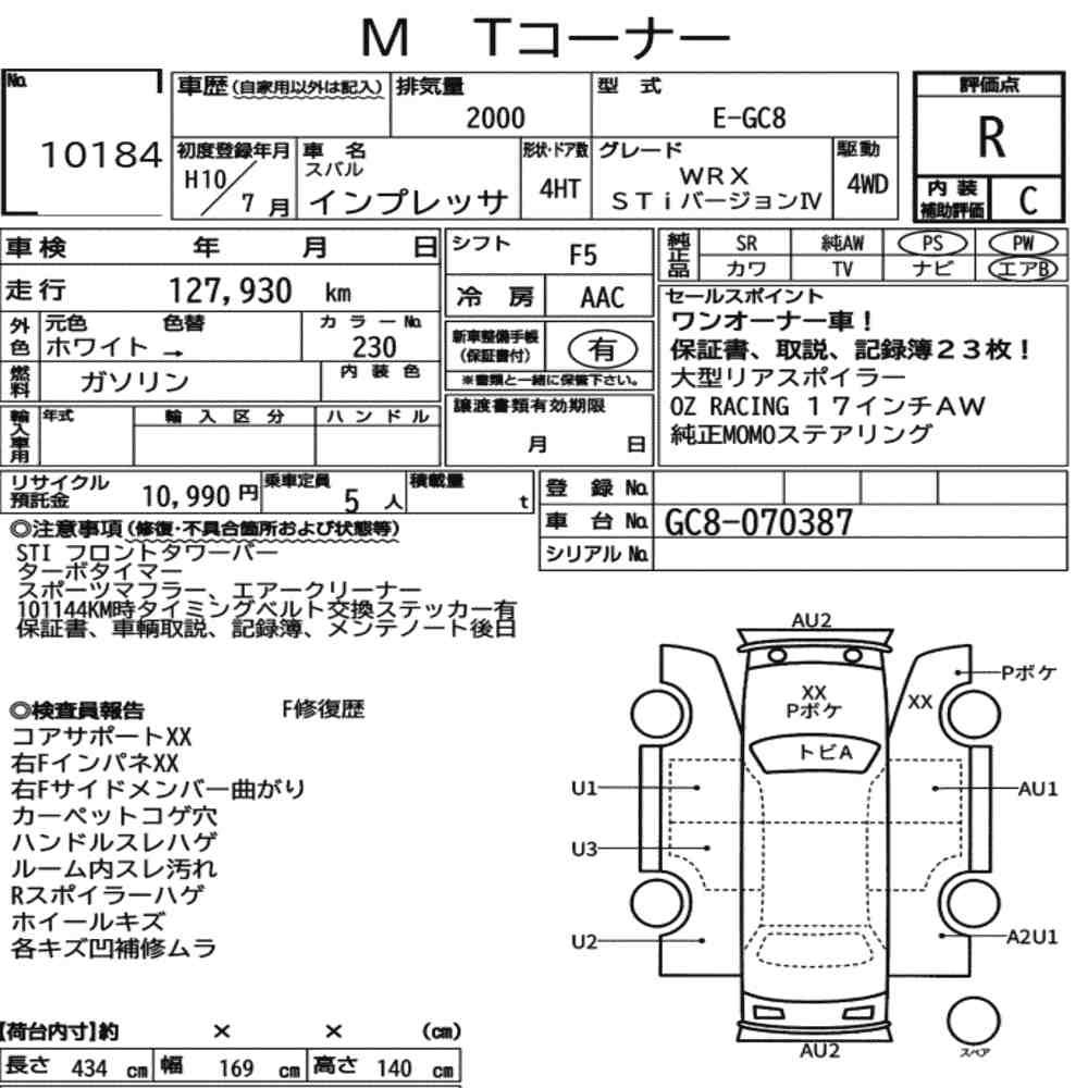SUBARU IMPREZA 4HT 4WD WRX STI VERSION Ⅳ