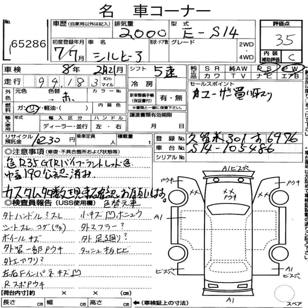 Szczegółowa analiza stanu pojazdu przeprowadzona przez japońskich ekspertów. Sprawdź oznaczenia uszkodzeń poniżej.