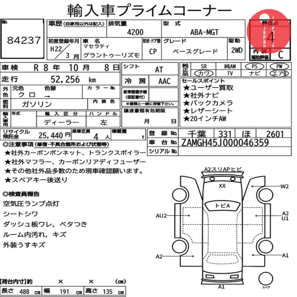 Detailed vehicle condition analysis performed by Japanese experts. Check damage codes below.