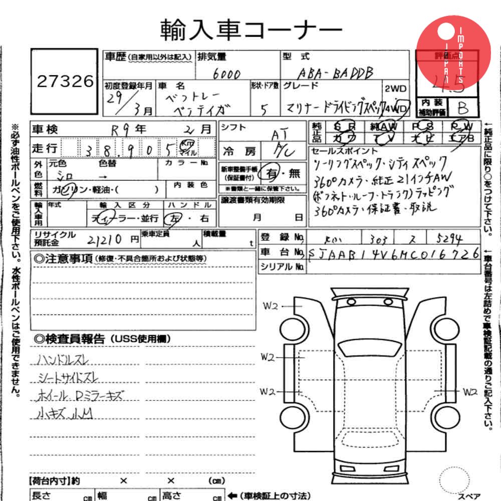 Detailed vehicle condition analysis performed by Japanese experts. Check damage codes below.