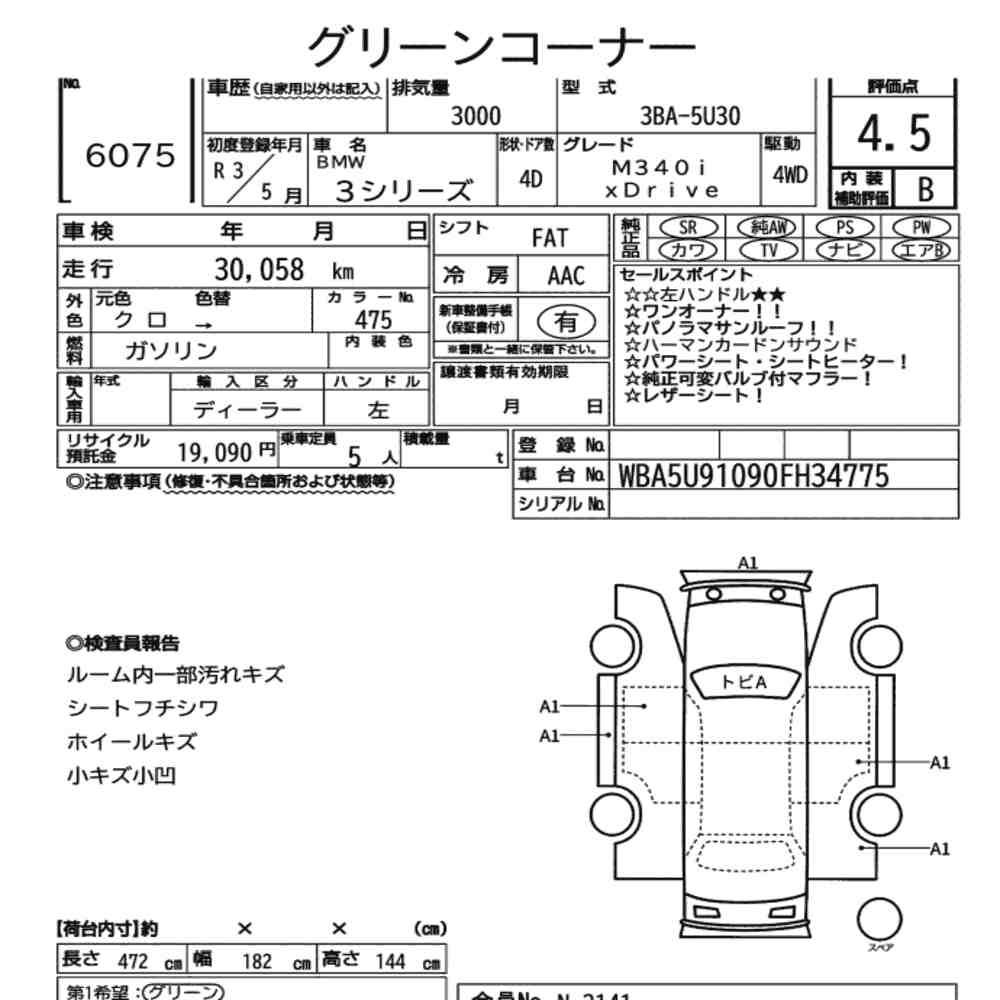 Szczegółowa analiza stanu pojazdu przeprowadzona przez japońskich ekspertów. Sprawdź oznaczenia uszkodzeń poniżej.