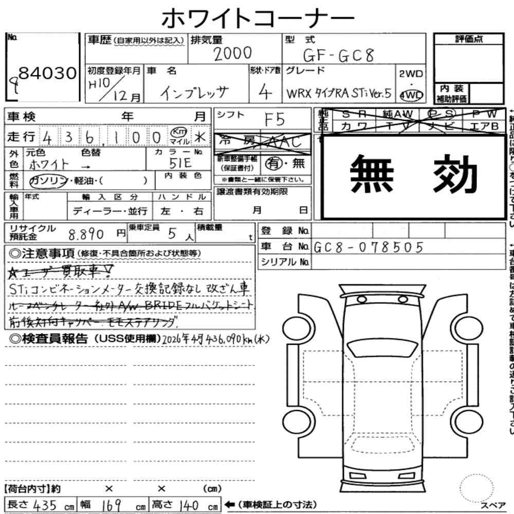 SUBARU IMPREZA 4HT 4WD WRX TYPE RA STI VERSION Ⅴ