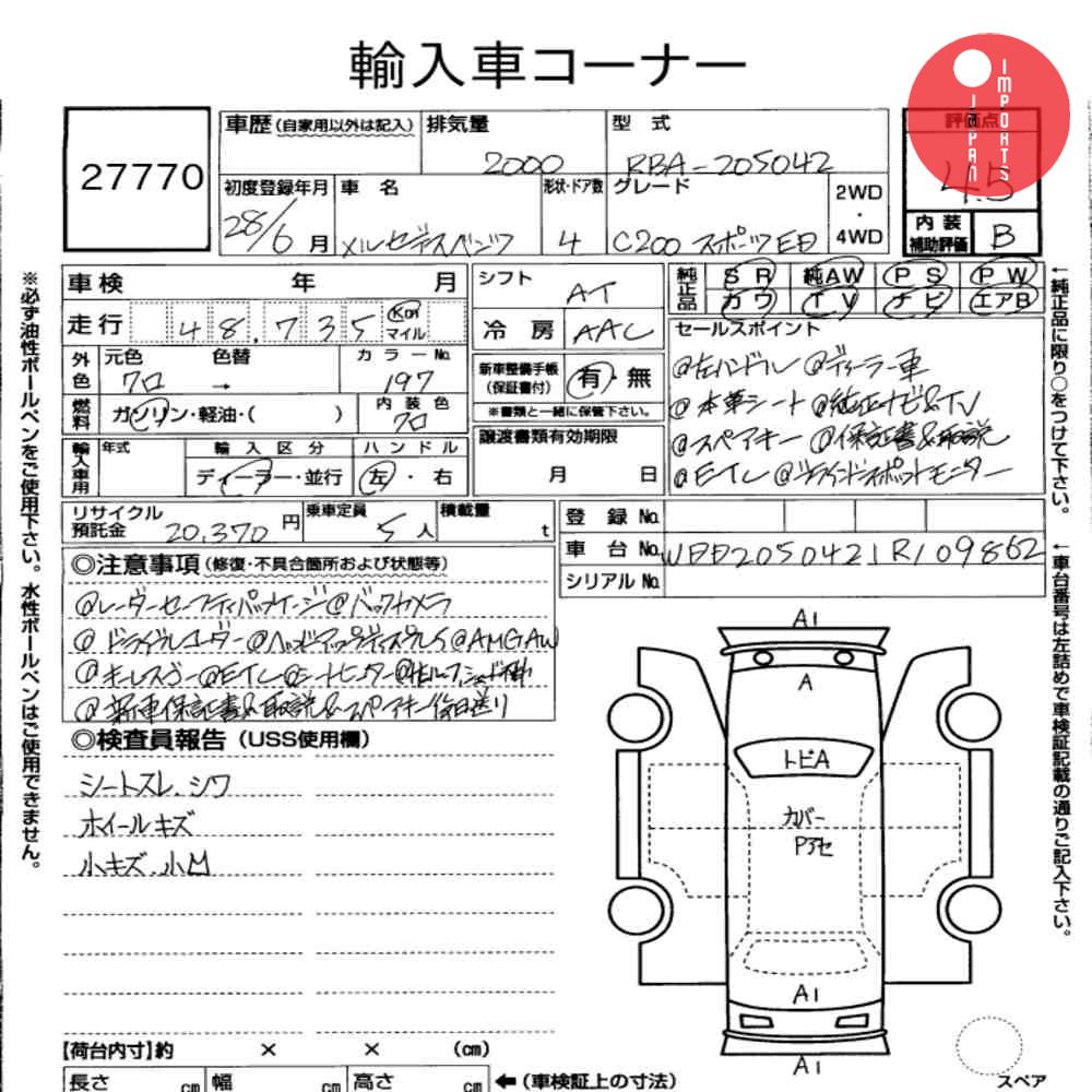 Detailed vehicle condition analysis performed by Japanese experts. Check damage codes below.