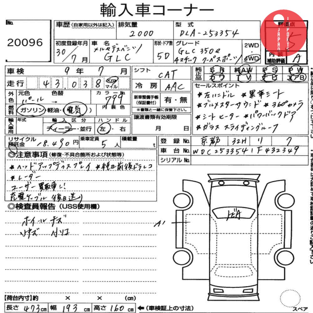 Detailed vehicle condition analysis performed by Japanese experts. Check damage codes below.