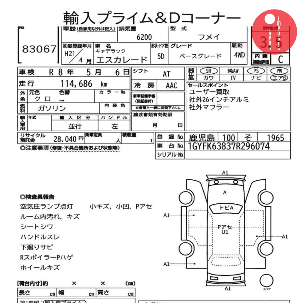 Detailed vehicle condition analysis performed by Japanese experts. Check damage codes below.