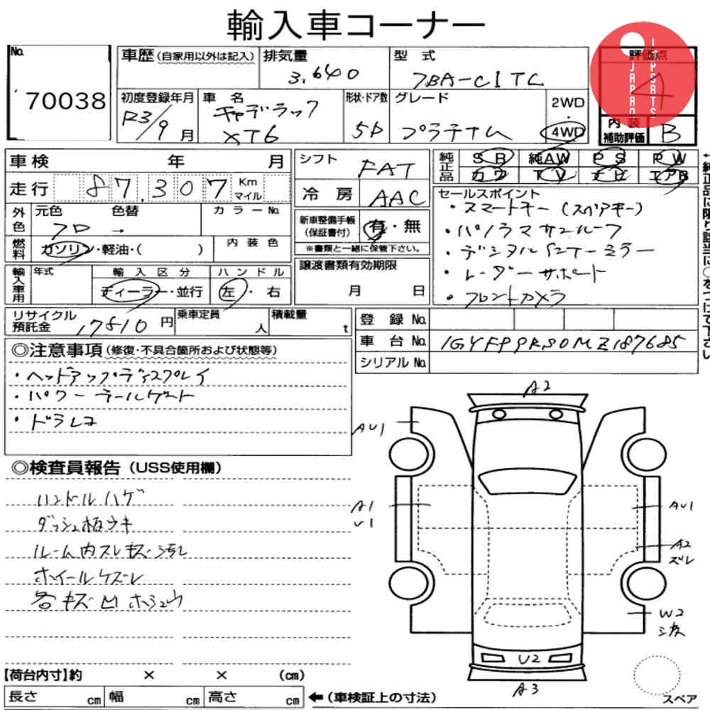 Detailed vehicle condition analysis performed by Japanese experts. Check damage codes below.