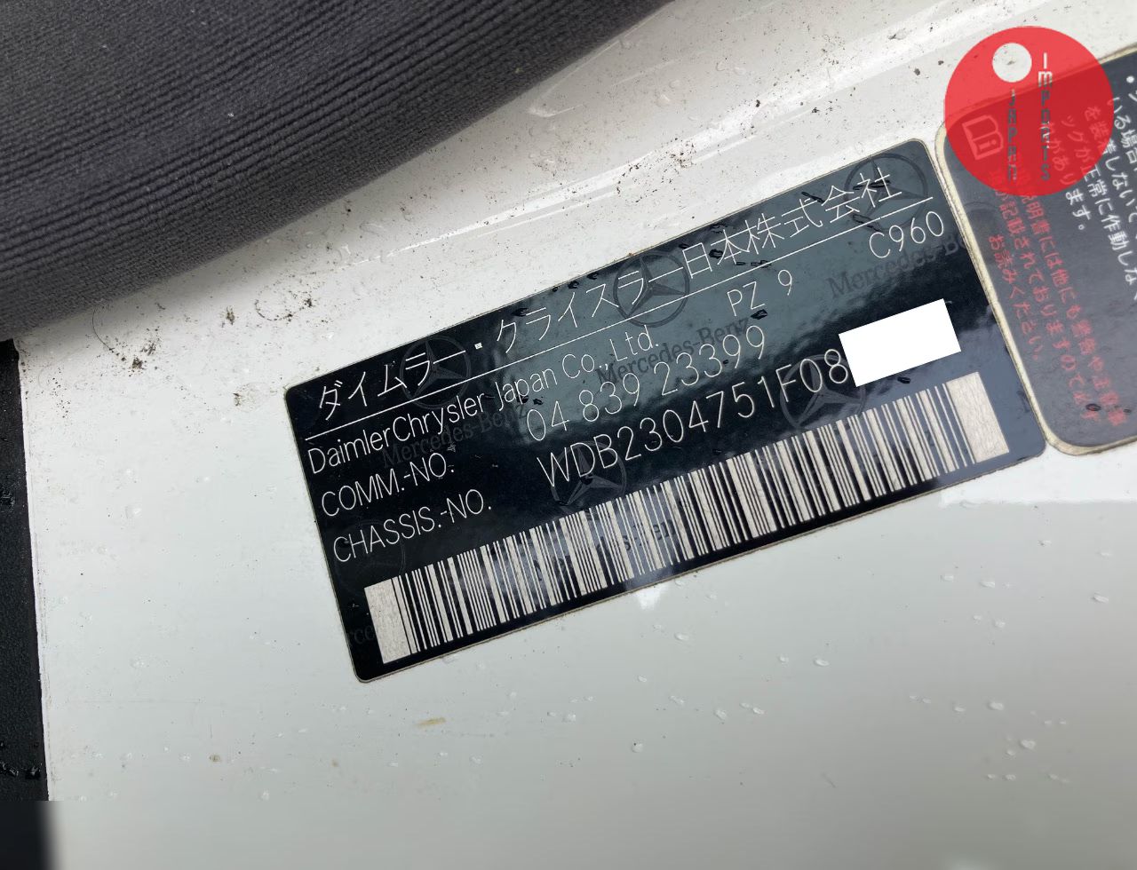 - Chassis No.WDB2304751F08****SEND