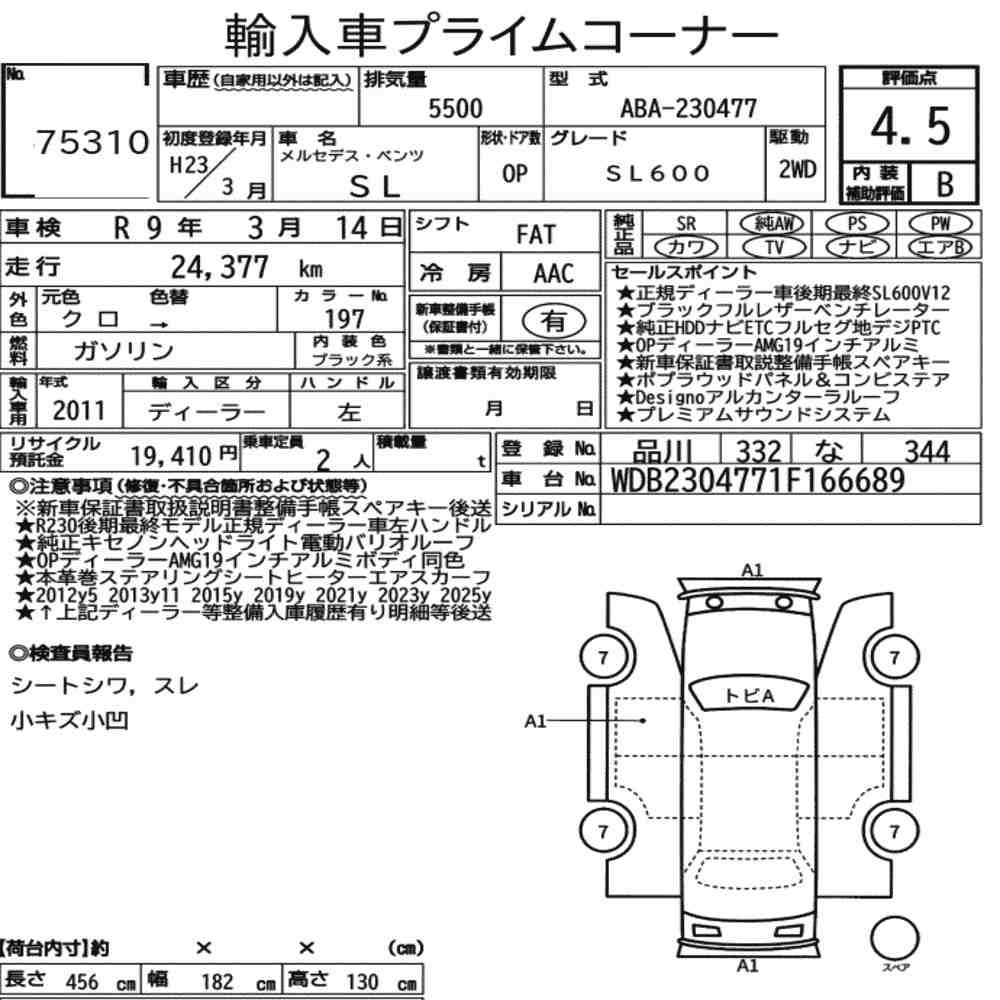 Szczegółowa analiza stanu pojazdu przeprowadzona przez japońskich ekspertów. Sprawdź oznaczenia uszkodzeń poniżej.