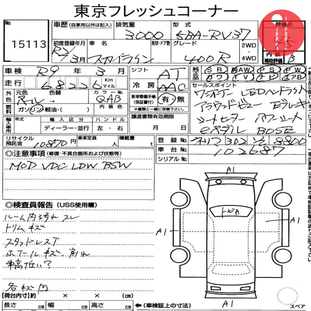 Detailed vehicle condition analysis performed by Japanese experts. Check damage codes below.