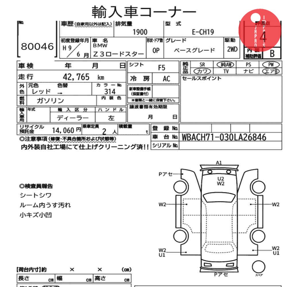 Detailed vehicle condition analysis performed by Japanese experts. Check damage codes below.