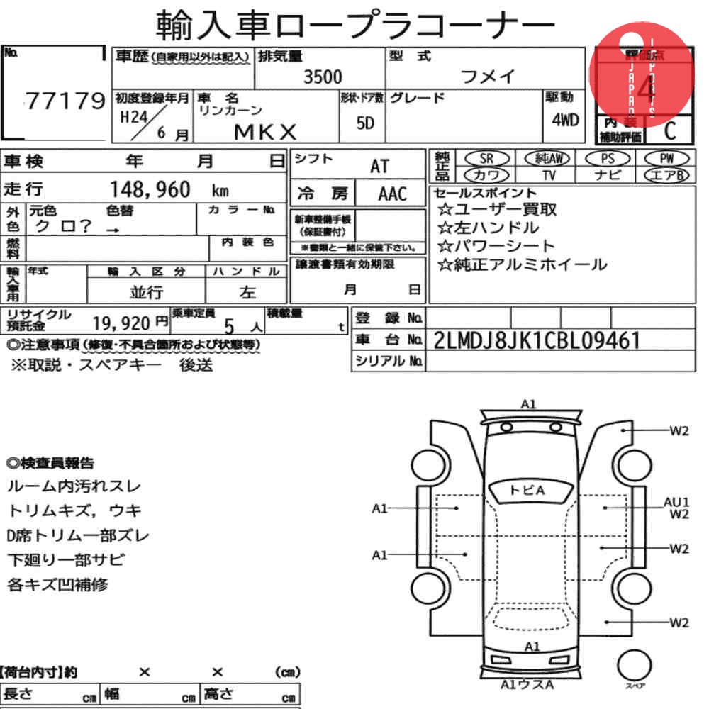 Detailed vehicle condition analysis performed by Japanese experts. Check damage codes below.