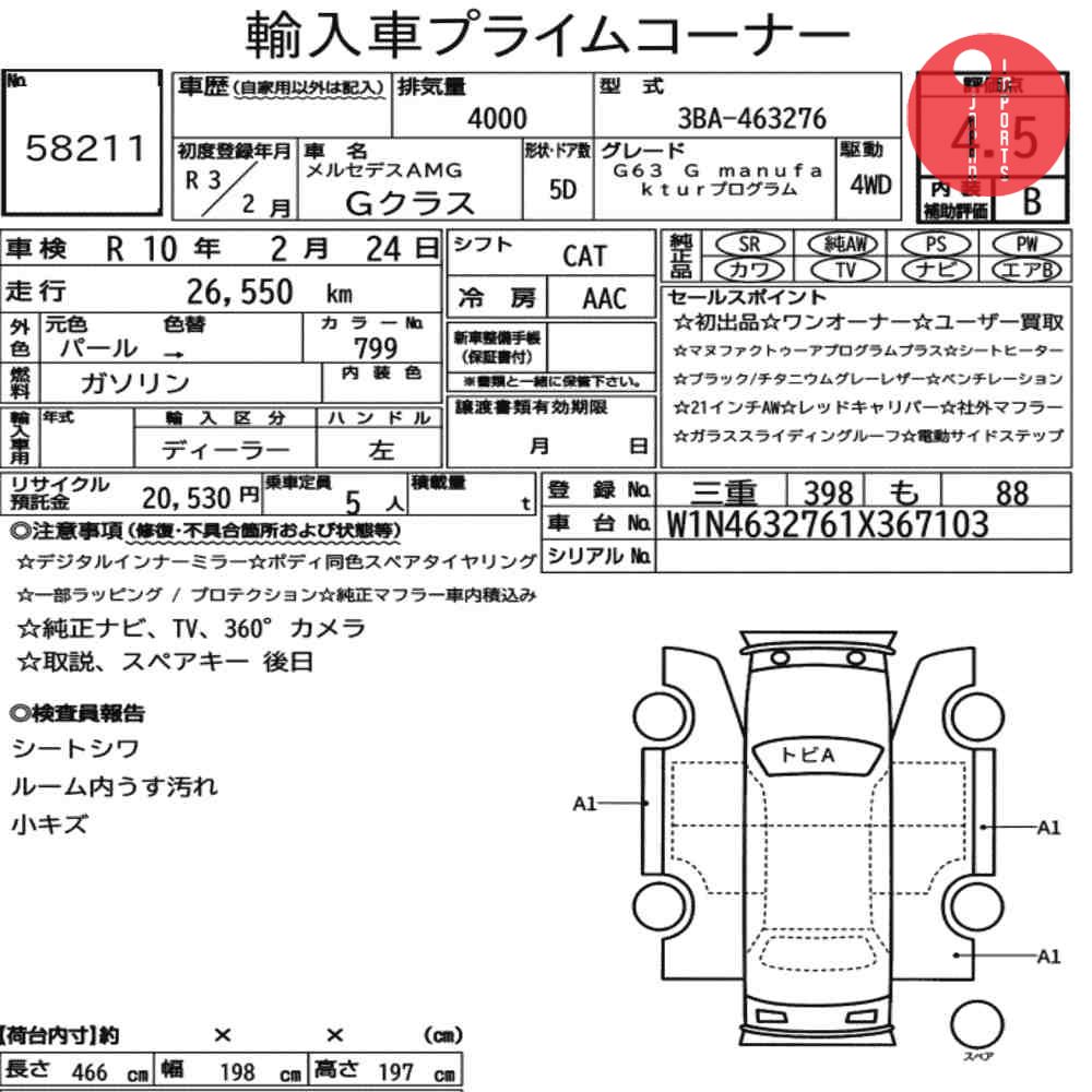 Detailed vehicle condition analysis performed by Japanese experts. Check damage codes below.