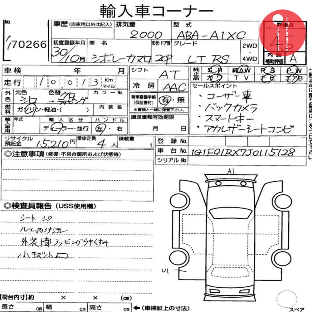 Detailed vehicle condition analysis performed by Japanese experts. Check damage codes below.