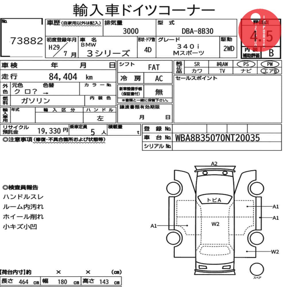 Detailed vehicle condition analysis performed by Japanese experts. Check damage codes below.