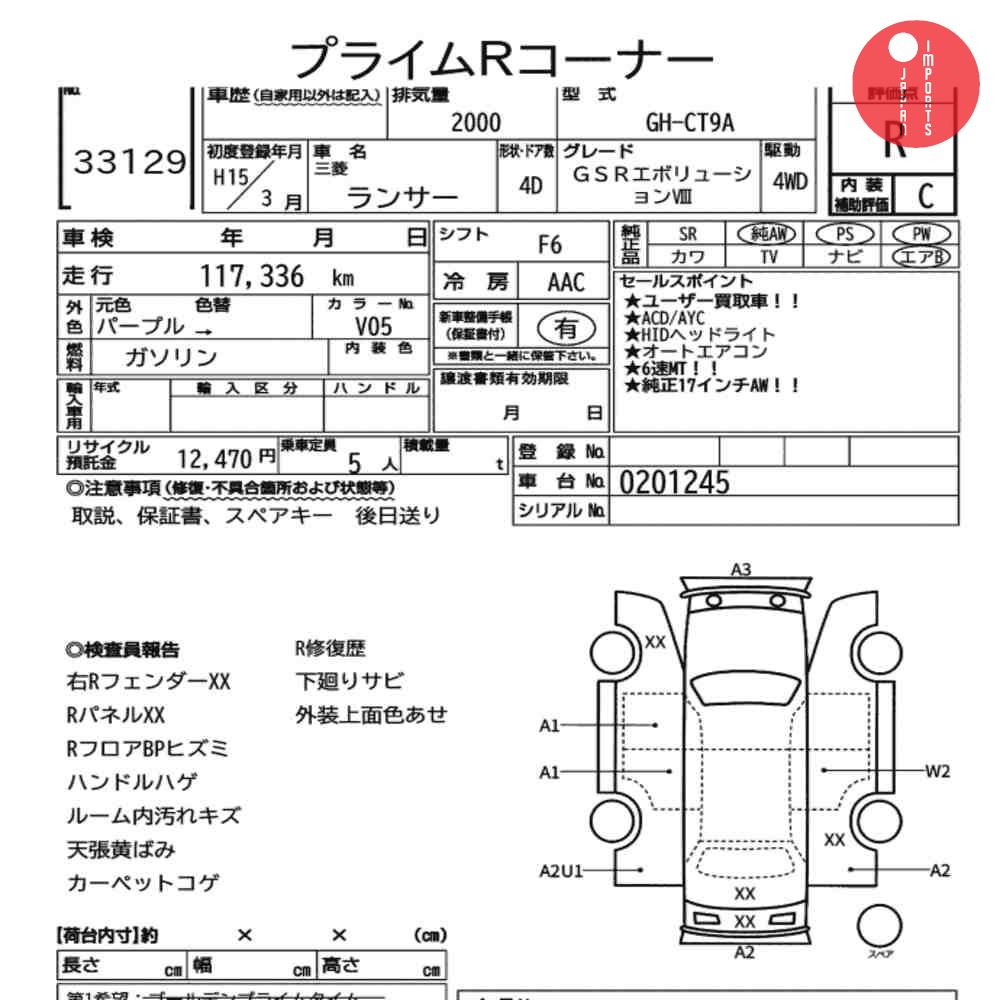 Generacja: MITSUBISHI LANCER 4D 4WD GSR EVOLUTION Ⅷ