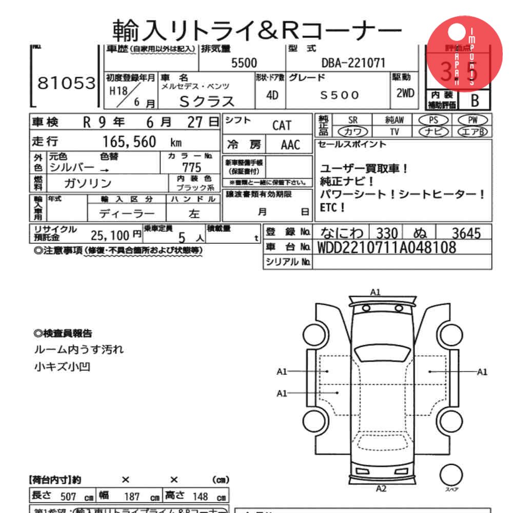 Detailed vehicle condition analysis performed by Japanese experts. Check damage codes below.