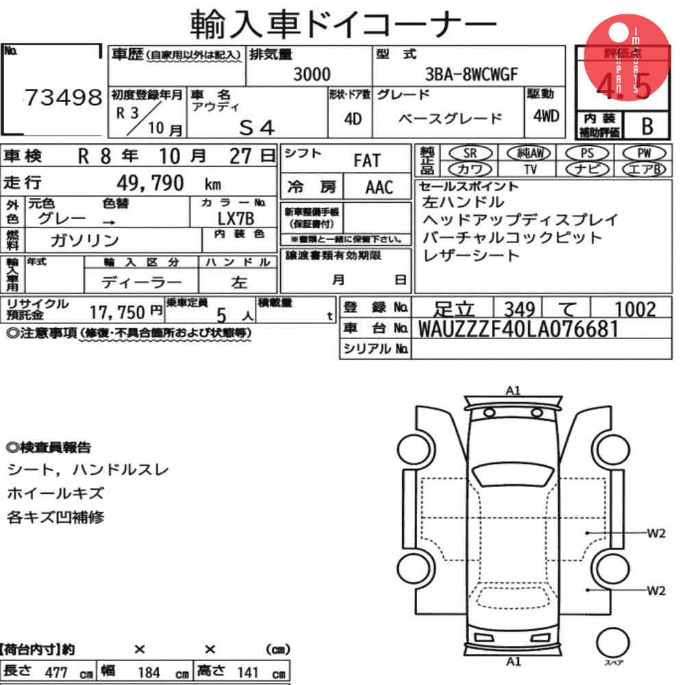 Generacja: AUDI S4 4WD BASE GRADE