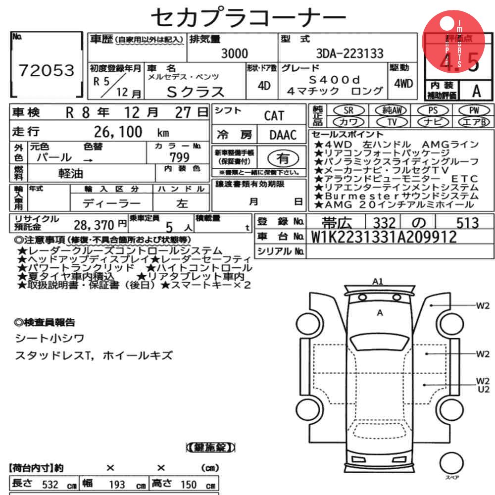 MERCEDES BENZ S-CLASS 4D 4WD S400D 4MATIC LONG