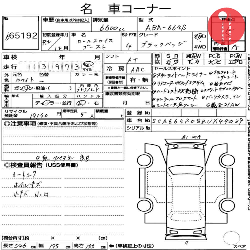 Detailed vehicle condition analysis performed by Japanese experts. Check damage codes below.