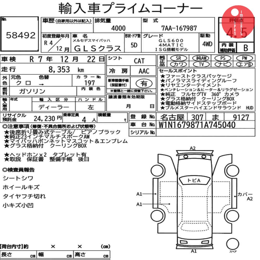 MERCEDES MAYBACH GLS-CLASS 4WD GLS600 4MATIC ISG MODEL