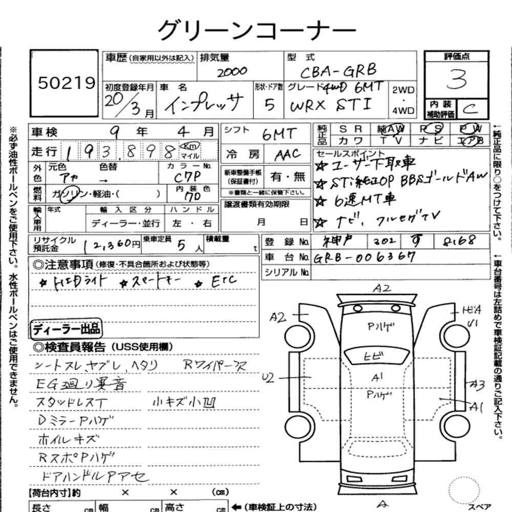 Szczegółowa analiza stanu pojazdu przeprowadzona przez japońskich ekspertów. Sprawdź oznaczenia uszkodzeń poniżej.