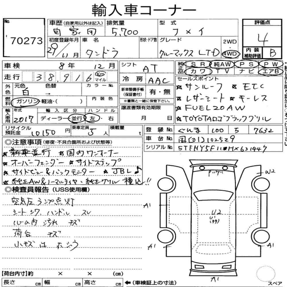 Szczegółowa analiza stanu pojazdu przeprowadzona przez japońskich ekspertów. Sprawdź oznaczenia uszkodzeń poniżej.