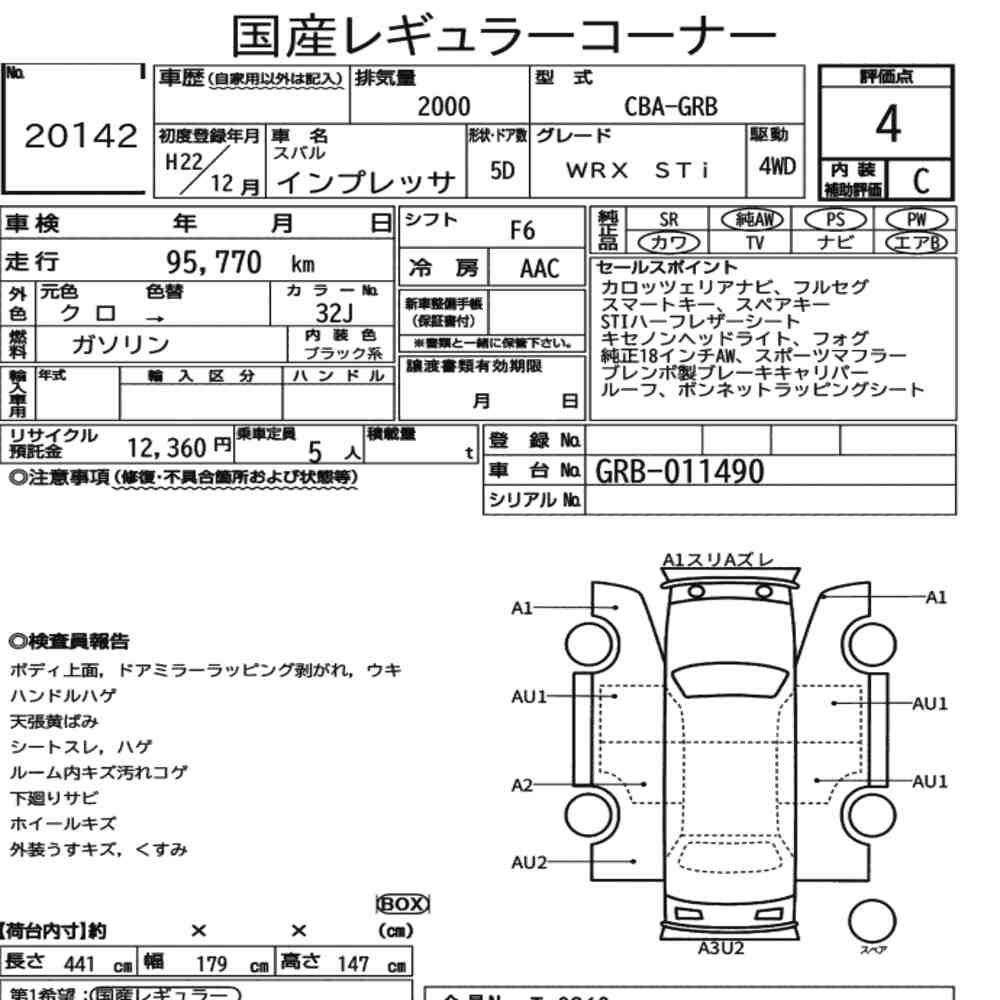 Szczegółowa analiza stanu pojazdu przeprowadzona przez japońskich ekspertów. Sprawdź oznaczenia uszkodzeń poniżej.