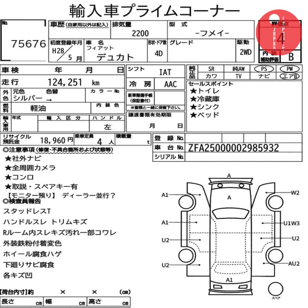 Detailed vehicle condition analysis performed by Japanese experts. Check damage codes below.