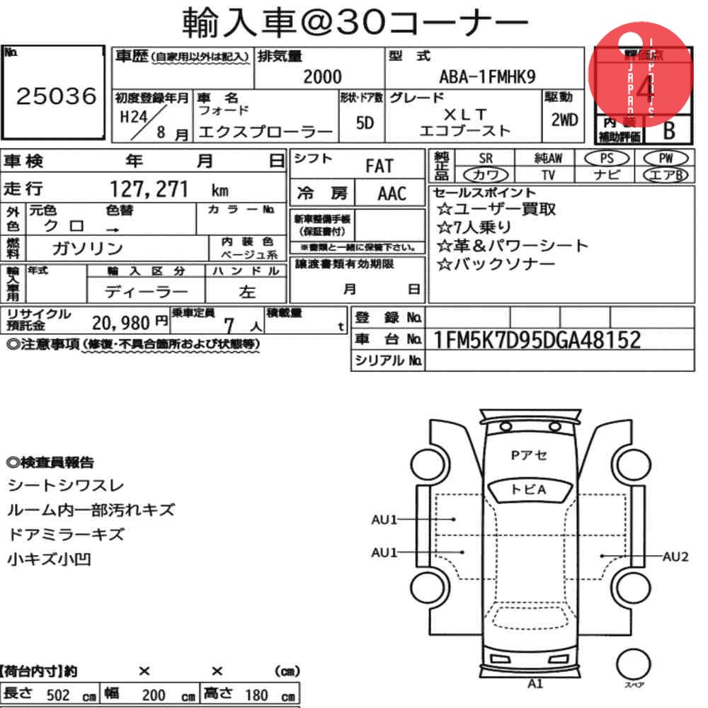 Detailed vehicle condition analysis performed by Japanese experts. Check damage codes below.