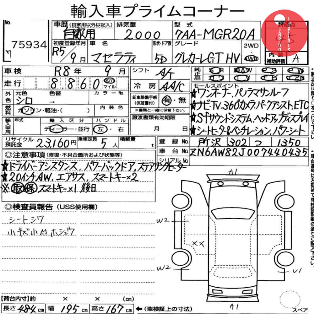 Detailed vehicle condition analysis performed by Japanese experts. Check damage codes below.