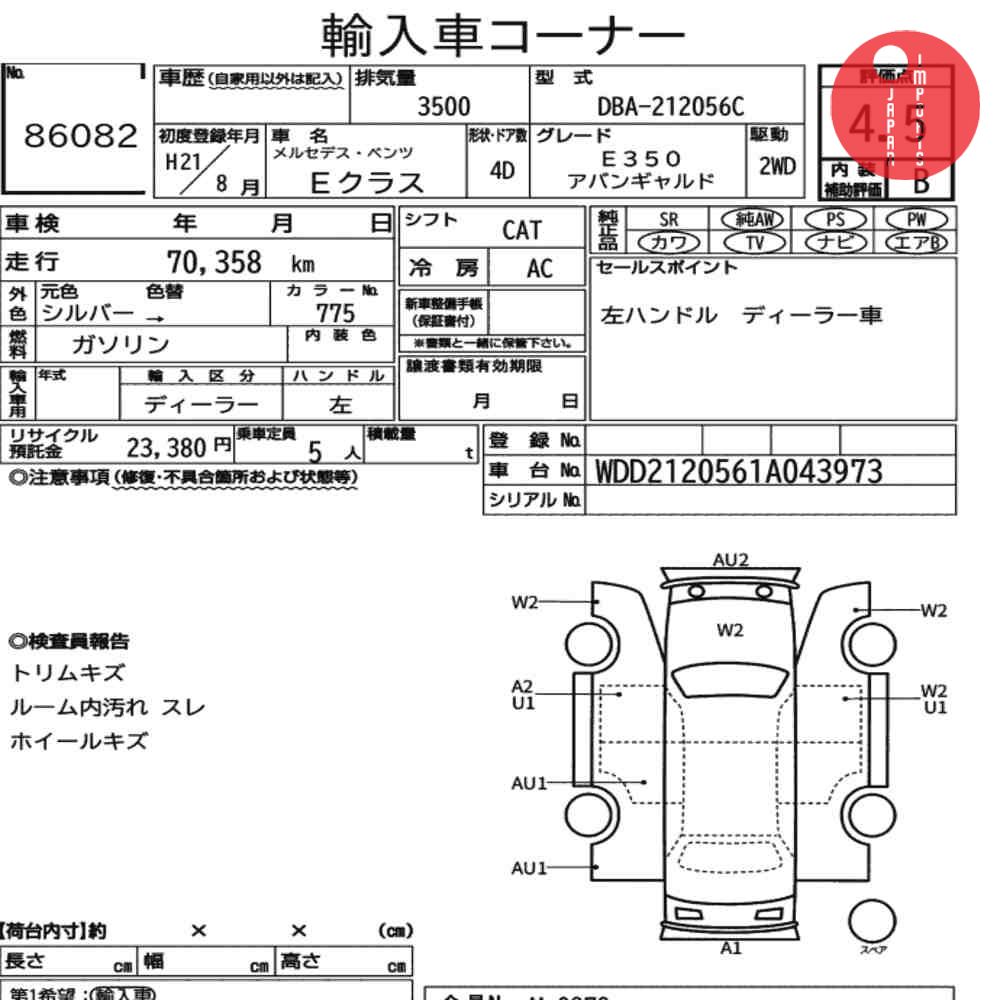 Detailed vehicle condition analysis performed by Japanese experts. Check damage codes below.