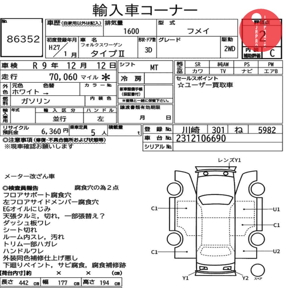 Detailed vehicle condition analysis performed by Japanese experts. Check damage codes below.