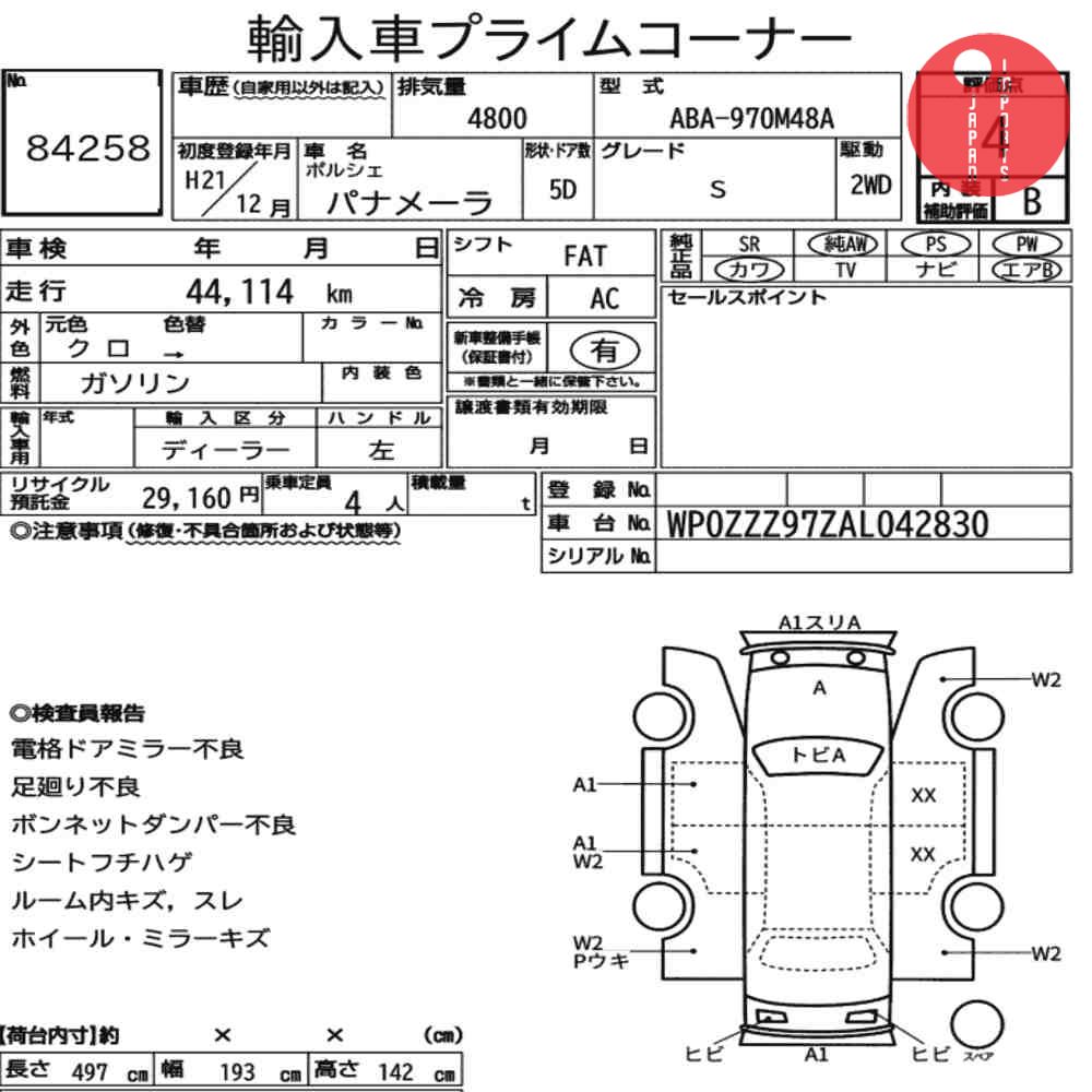 Detailed vehicle condition analysis performed by Japanese experts. Check damage codes below.