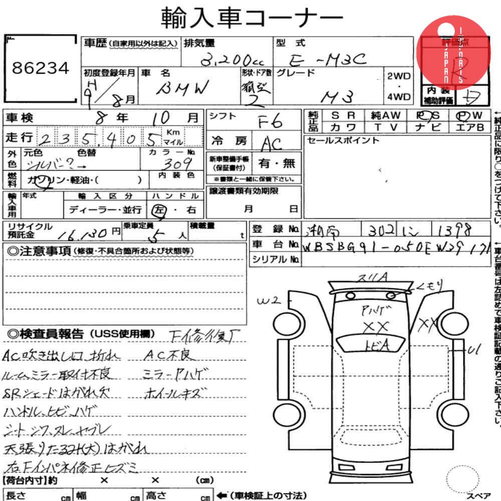 Detailed vehicle condition analysis performed by Japanese experts. Check damage codes below.
