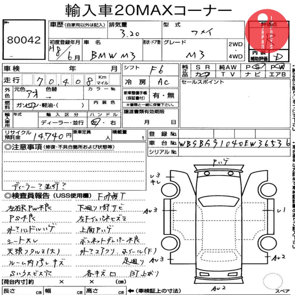 Detailed vehicle condition analysis performed by Japanese experts. Check damage codes below.