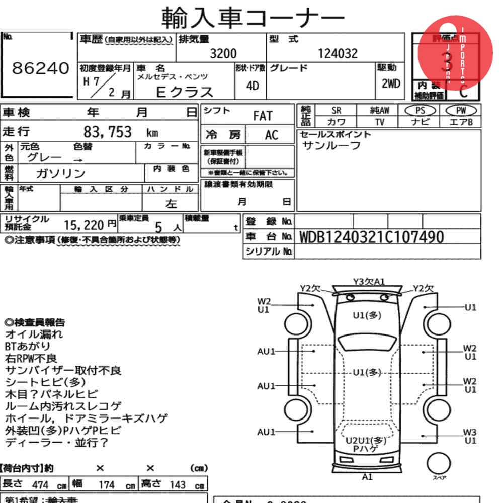 Detailed vehicle condition analysis performed by Japanese experts. Check damage codes below.