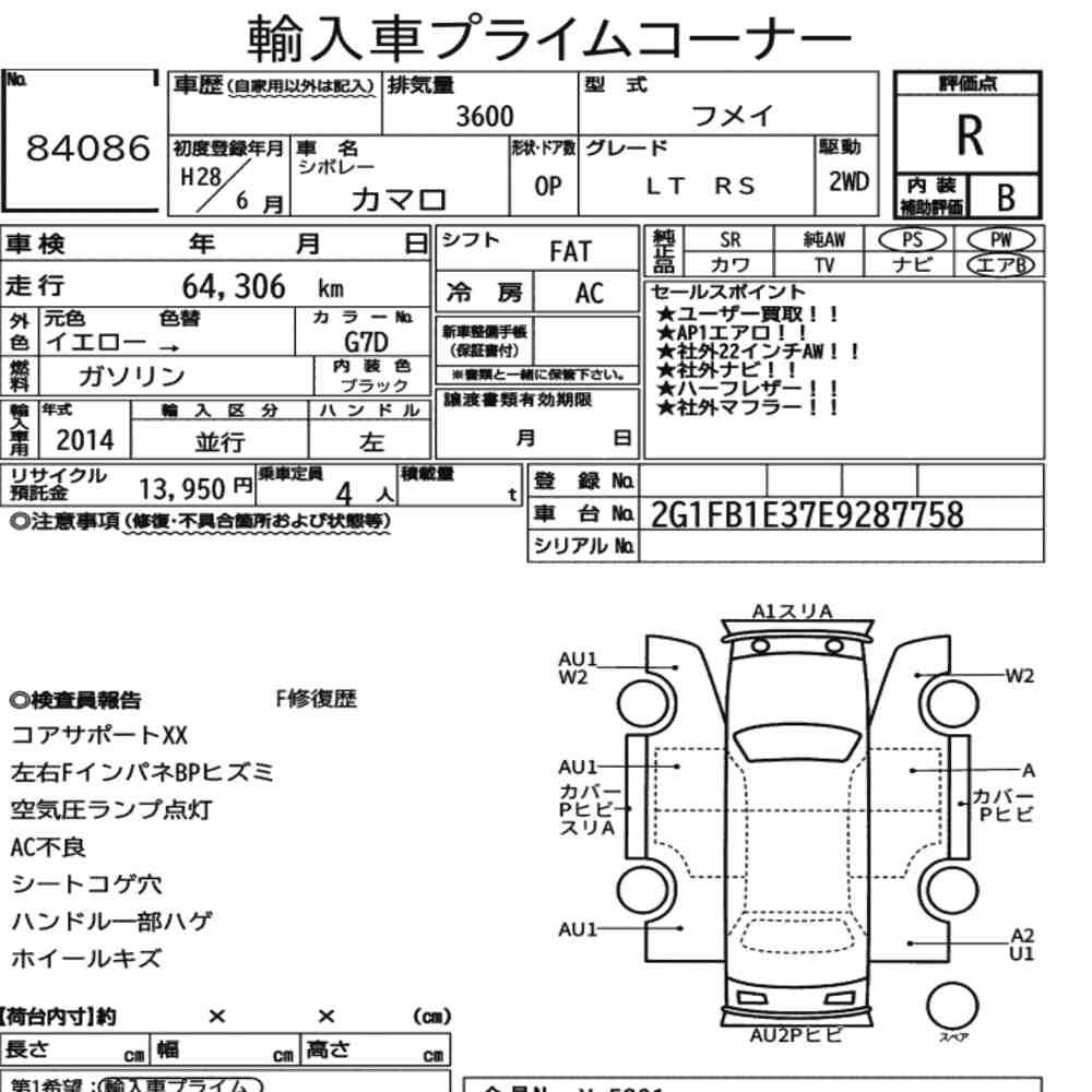 Detailed vehicle condition analysis performed by Japanese experts. Check damage codes below.