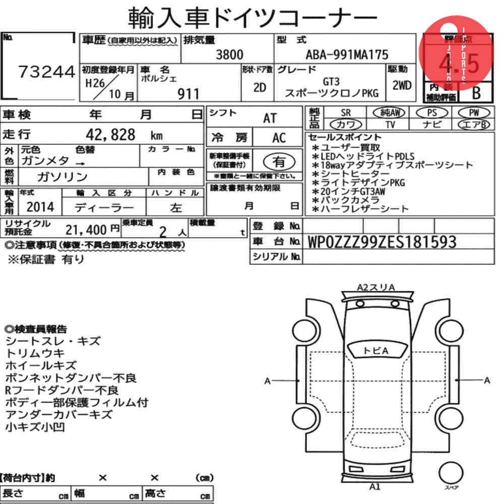 Detailed vehicle condition analysis performed by Japanese experts. Check damage codes below.