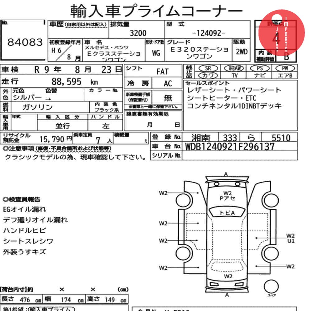 Detailed vehicle condition analysis performed by Japanese experts. Check damage codes below.