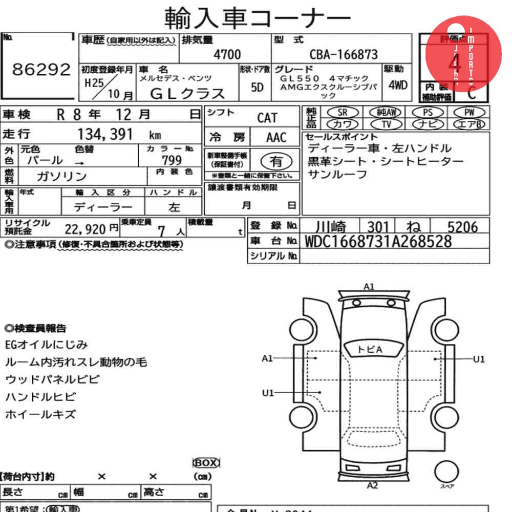Detailed vehicle condition analysis performed by Japanese experts. Check damage codes below.