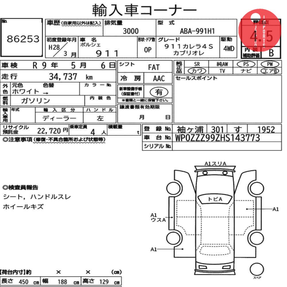 Detailed vehicle condition analysis performed by Japanese experts. Check damage codes below.