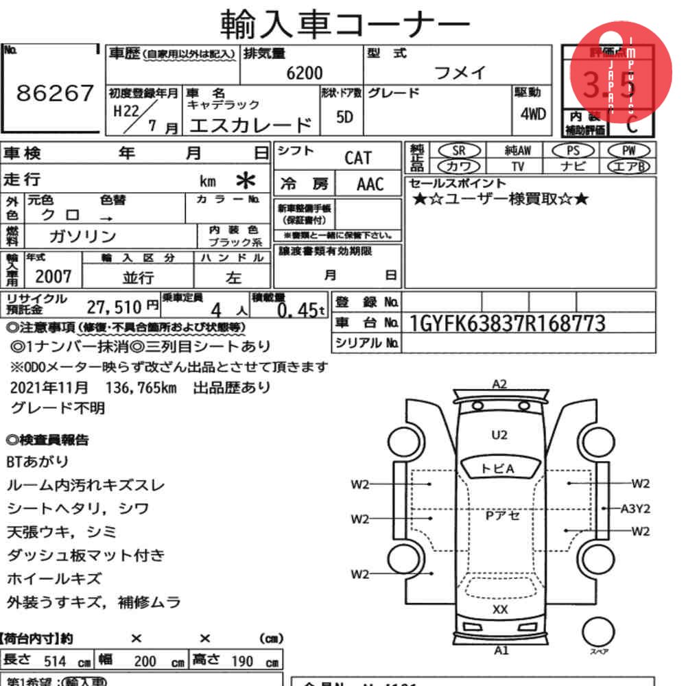 Detailed vehicle condition analysis performed by Japanese experts. Check damage codes below.