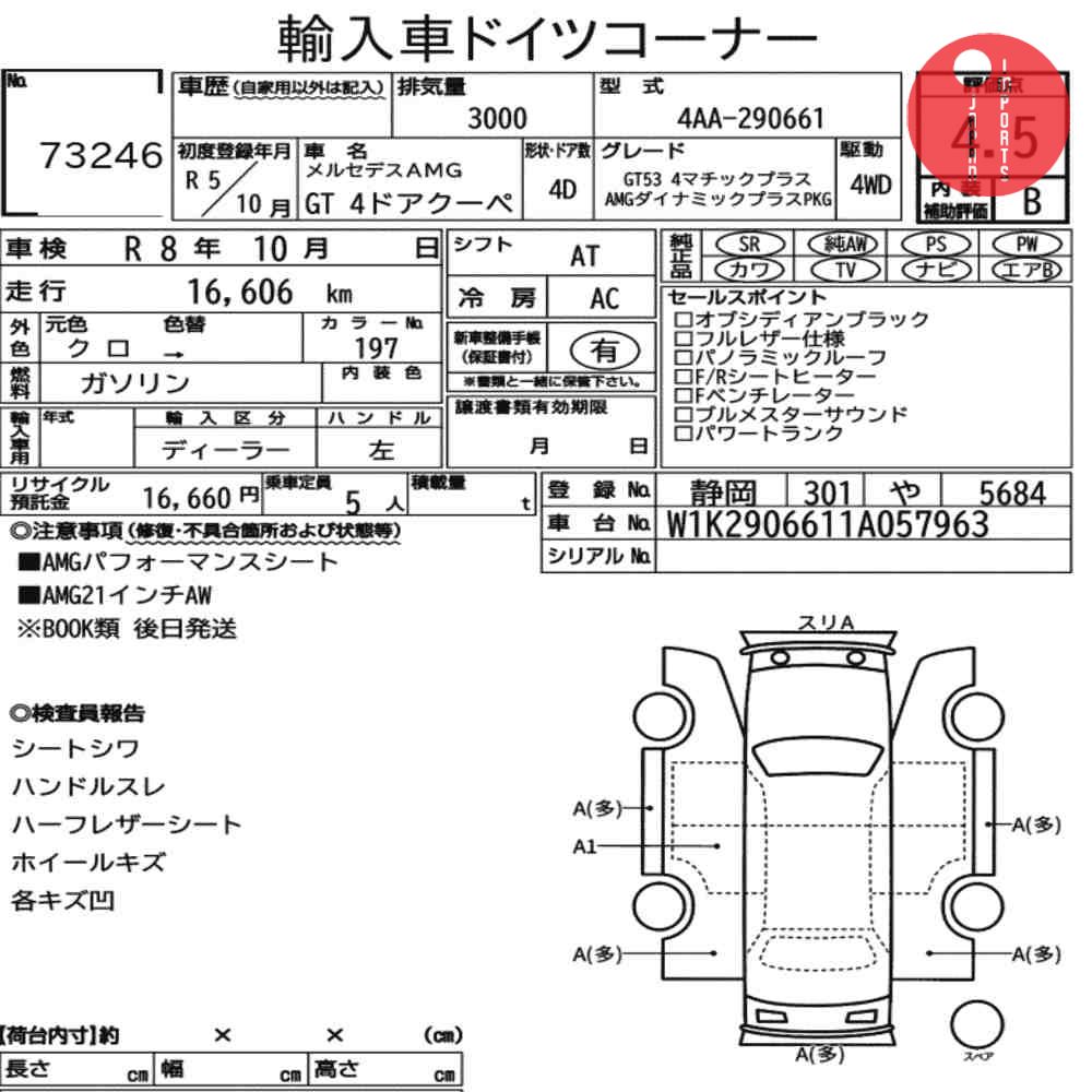 Detailed vehicle condition analysis performed by Japanese experts. Check damage codes below.