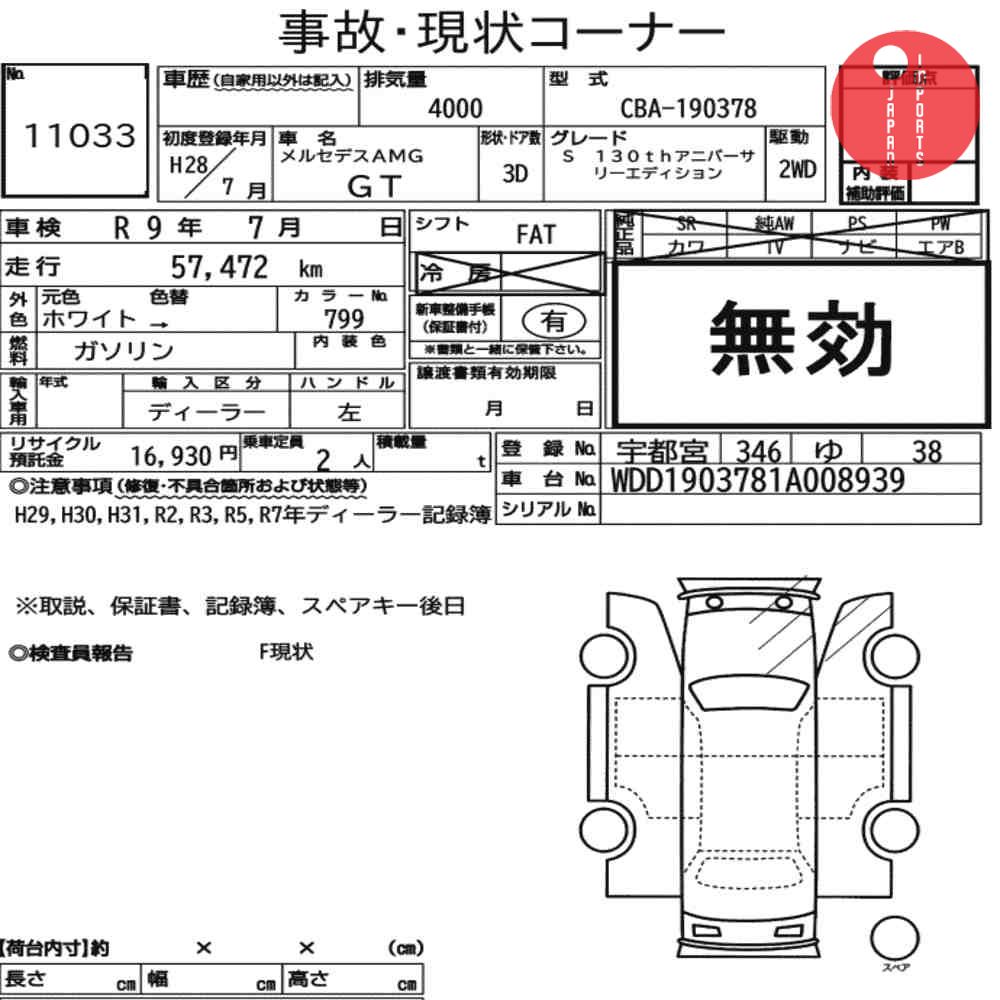 Detailed vehicle condition analysis performed by Japanese experts. Check damage codes below.