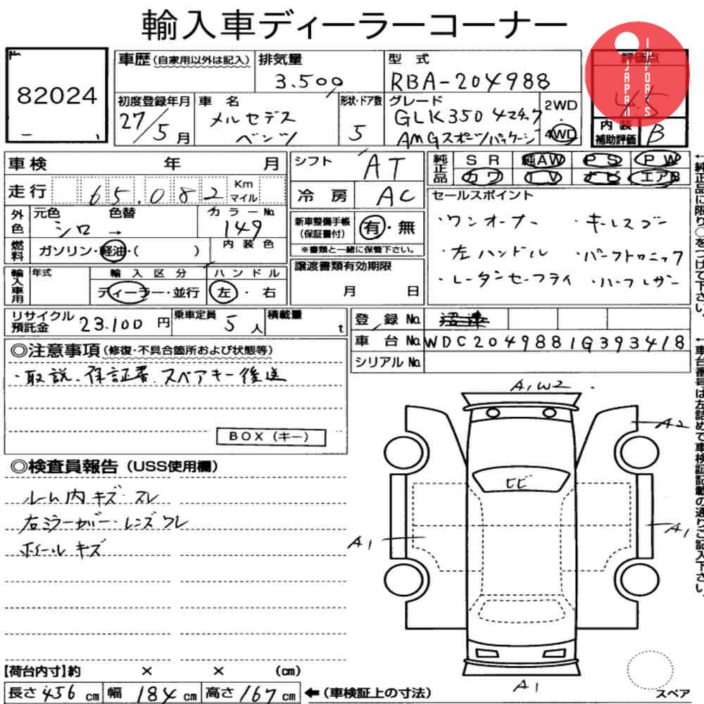 Detailed vehicle condition analysis performed by Japanese experts. Check damage codes below.