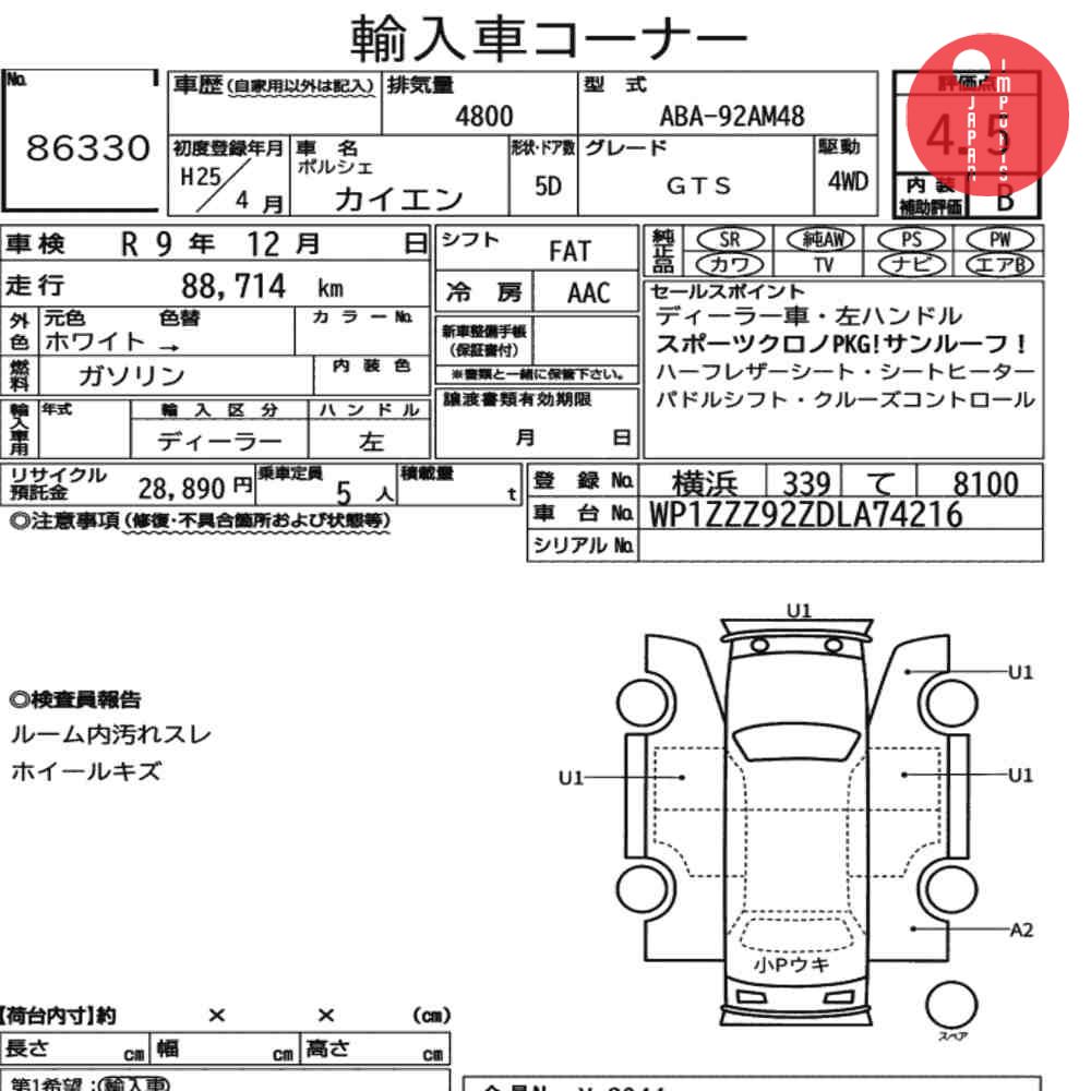 Detailed vehicle condition analysis performed by Japanese experts. Check damage codes below.