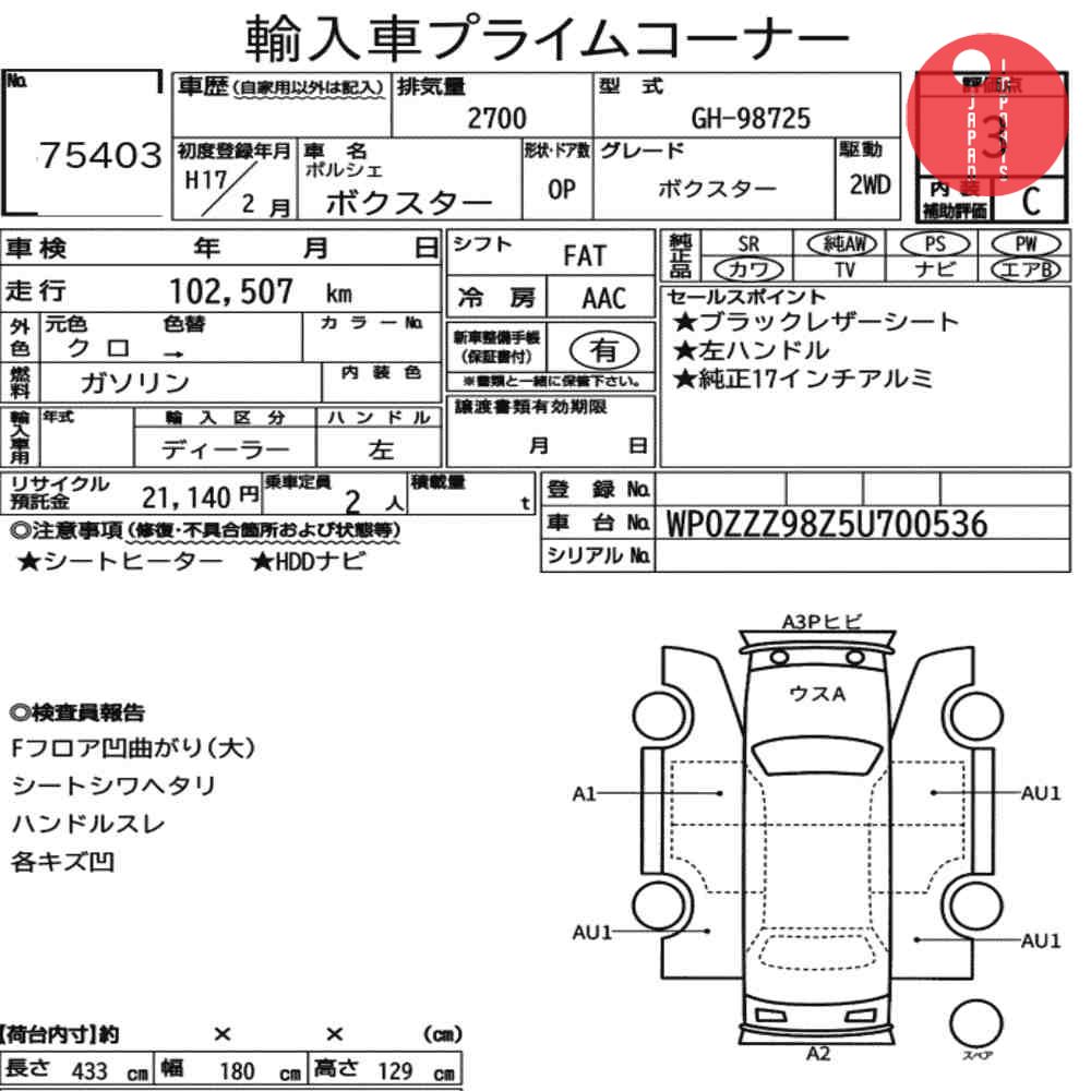 Detailed vehicle condition analysis performed by Japanese experts. Check damage codes below.