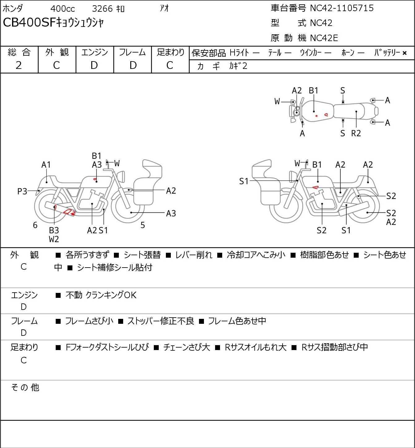 Detailed vehicle condition analysis performed by Japanese experts. Check damage codes below.