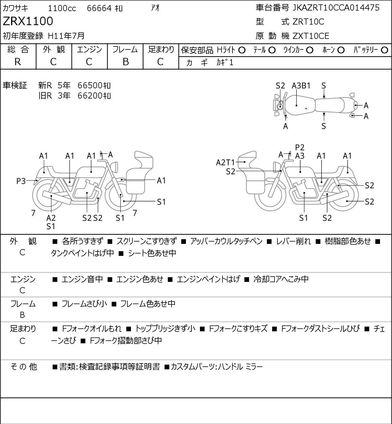 Detailed vehicle condition analysis performed by Japanese experts. Check damage codes below.