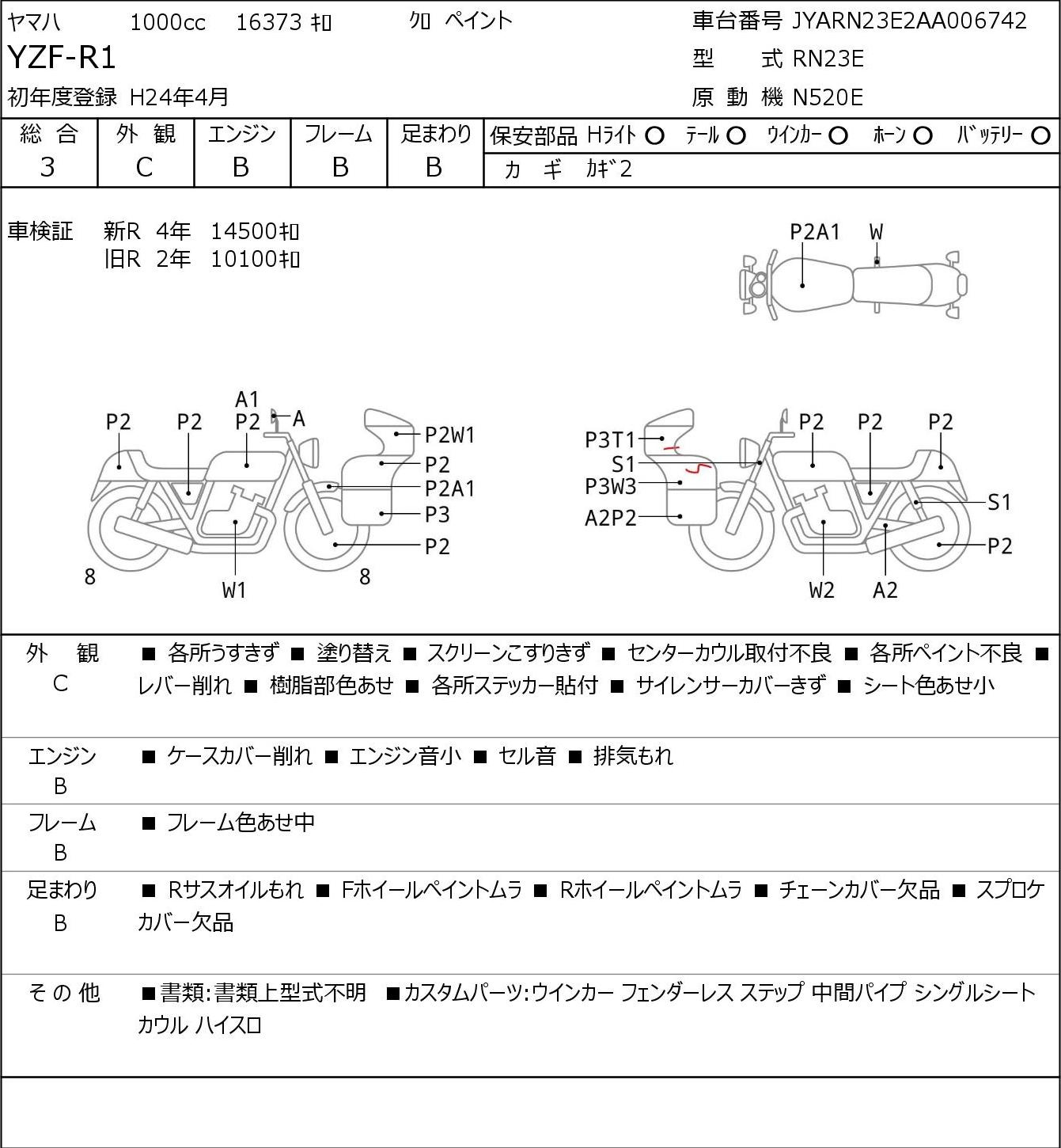 Detailed vehicle condition analysis performed by Japanese experts. Check damage codes below.